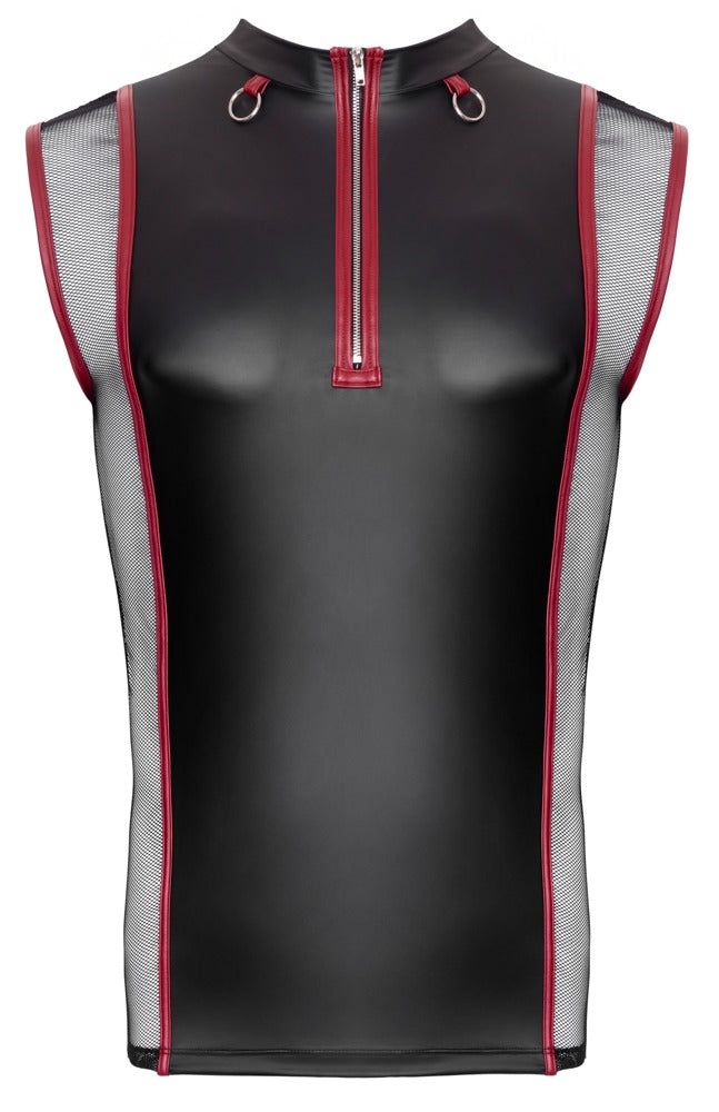 Black shirt by NEK in an accentuating matt look with a studded collar strap that can also be removed. Mock sleeves made of transparent mesh with studded straps at the end. All-round soft and elastic for maximum comfort.